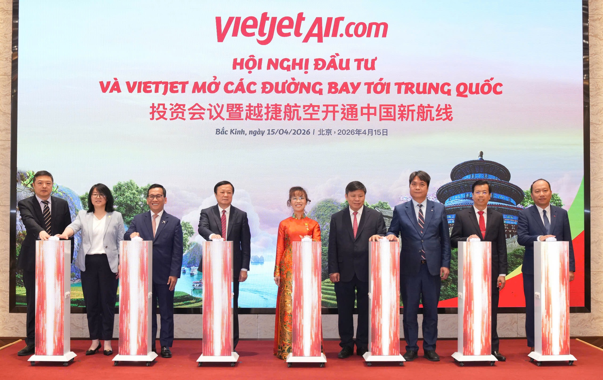 Tại hội nghị, Vietjet công bố 5 đường bay mới giữa Việt Nam và Trung Quốc gồm: Hà Nội - Hàng Châu; Hà Nội - Ân Thi; Hà Nội - Hoàng Sơn; TPHCM - Quế Lâm; TPHCM - Hoàng Sơn